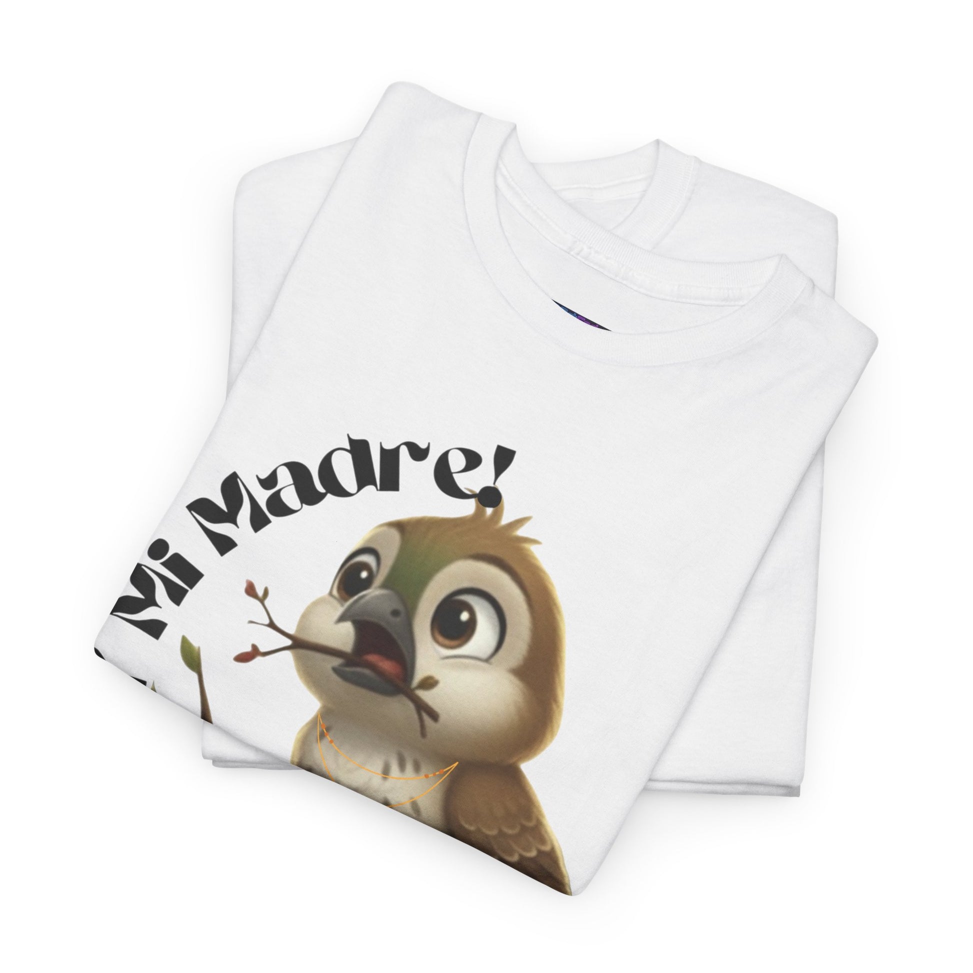 Features exclusive high-definition artwork of Ciguita perched on a branch, caught mid-moment as a twig slips from her open beak. Her surprised expression pairs perfectly with the phrase “¡Ay Mi Madre!”—a heartfelt exclamation of shock, worry, or sudden realization. A lively, expressive design that captures those split seconds when everything goes off script.