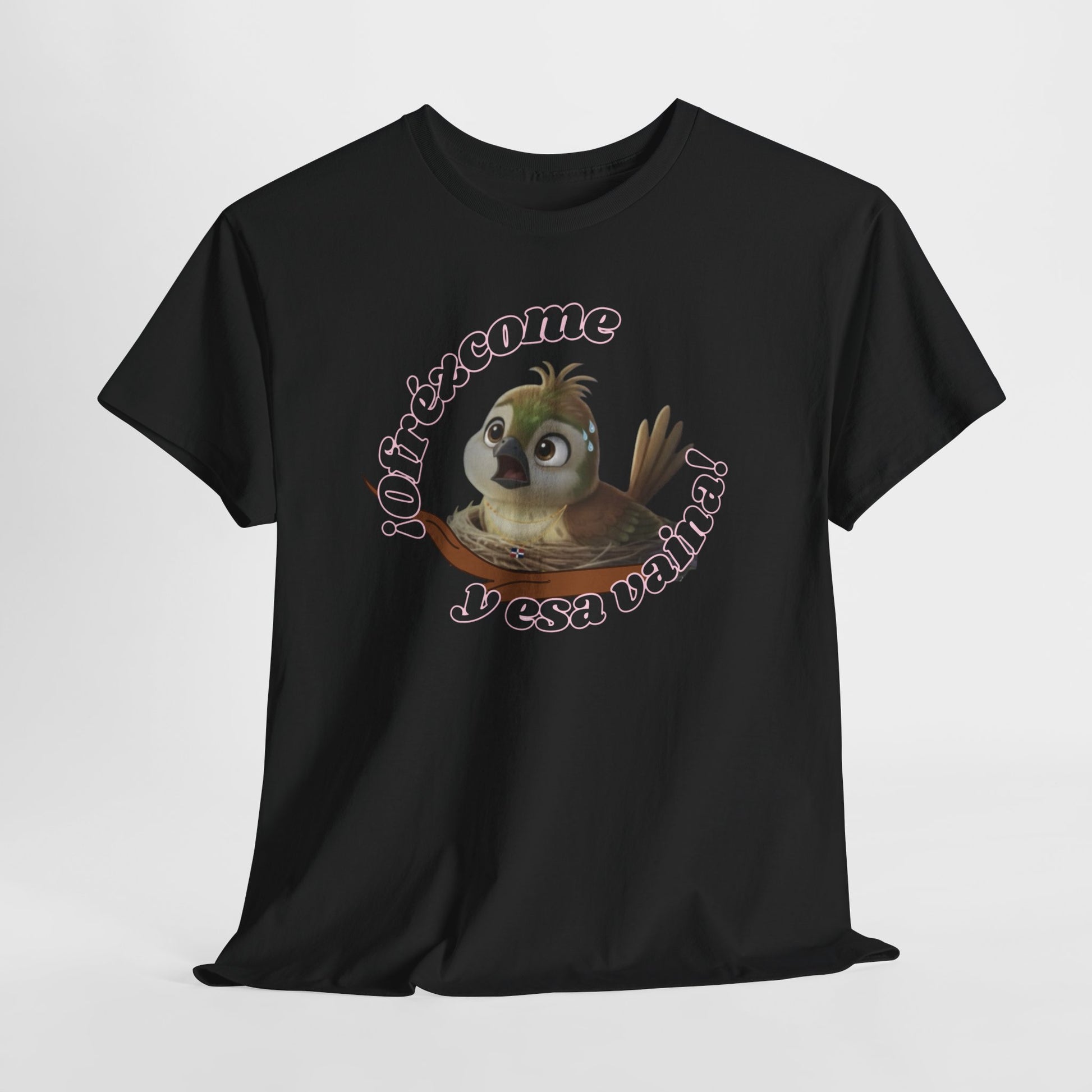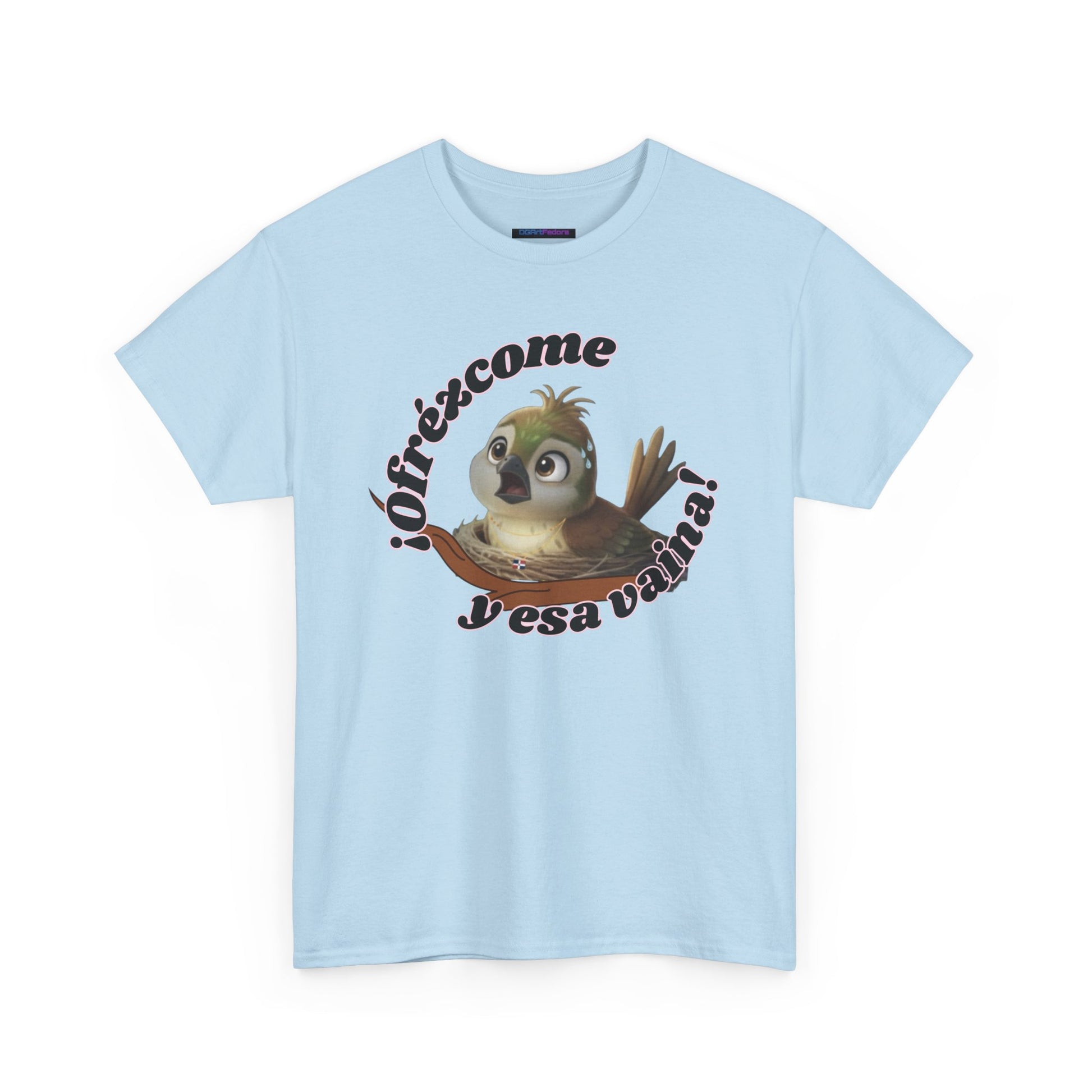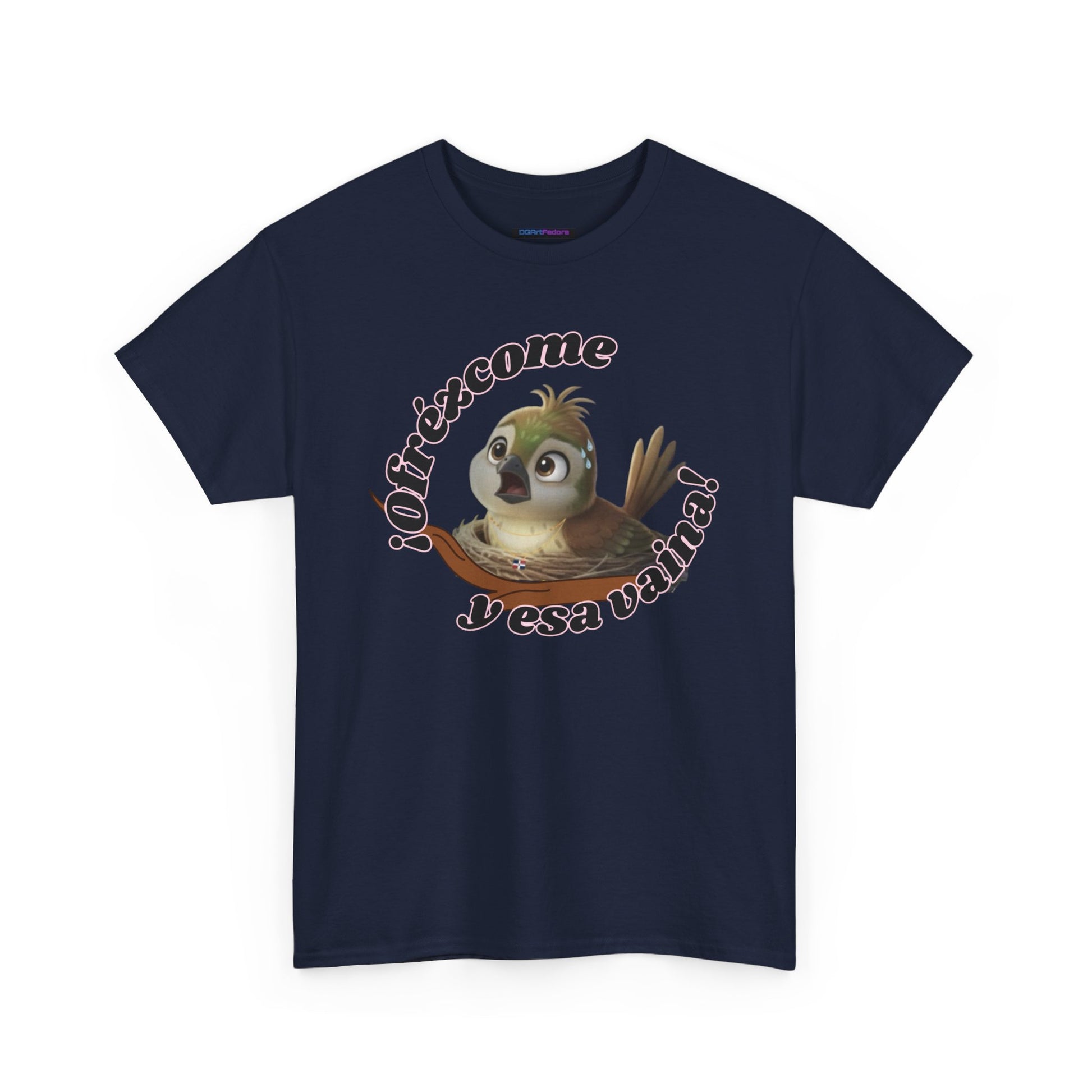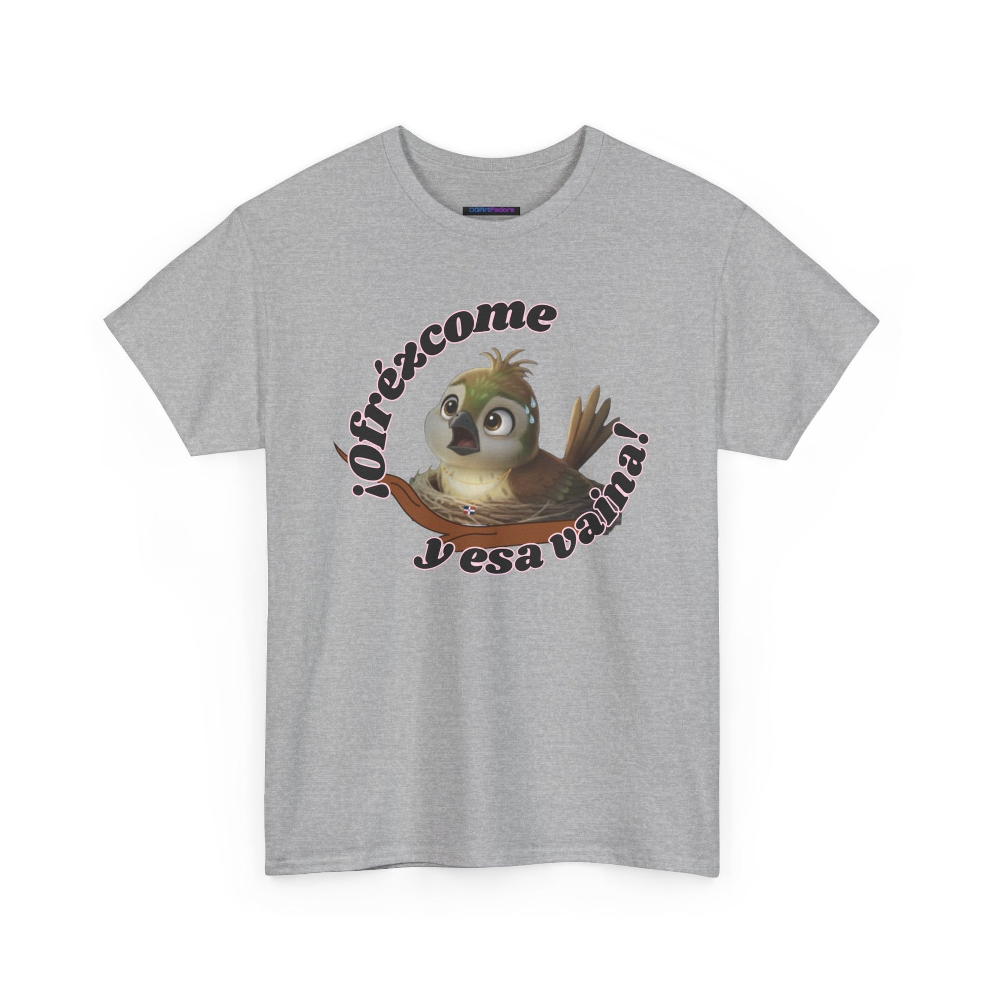 Features exclusive high-definition artwork of Ciguita sitting in her nest, visibly sweating as she reacts to the unexpected. Paired with the expressive phrase “¡Ofrézcome y esa vaina!”—a Dominican-style exclamation of disbelief—the design captures that all-too-familiar moment of being overwhelmed, surprised, or simply done. A humorous, relatable piece full of personality and cultural flavor.